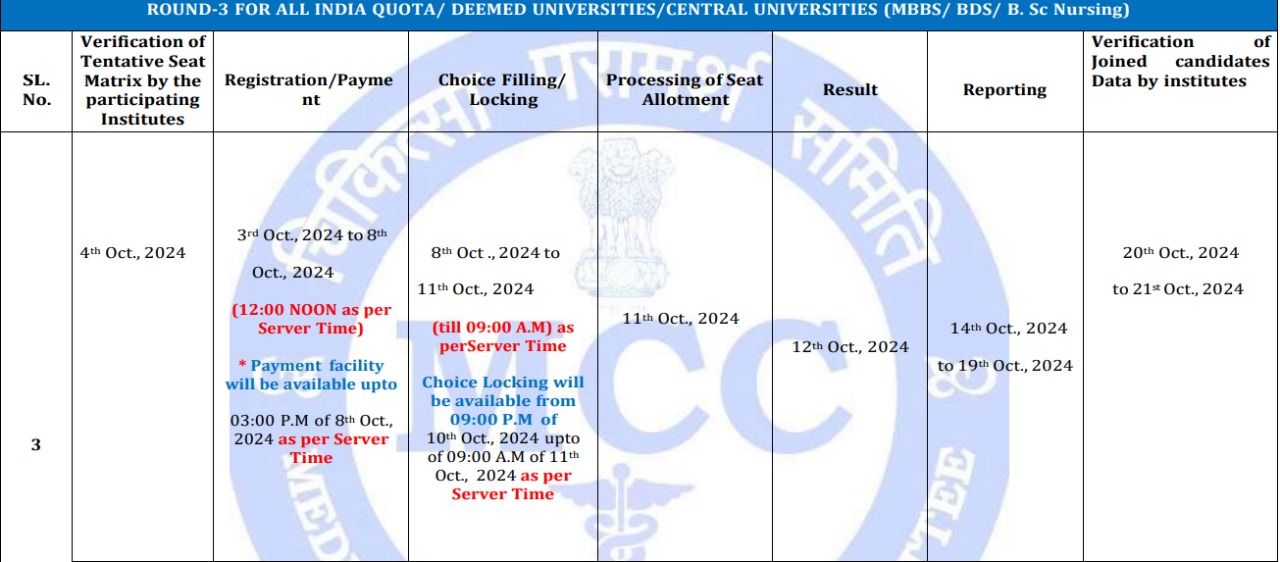 New Registration & Payment: 03-10-2024 to 08-10-2024