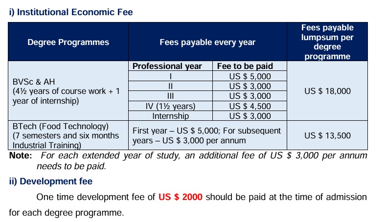 College Fees for NRI Quota- $18,000 (For 5½ Years) and in Indian rupees Rs.15,41,160/- (For 5½ Years).