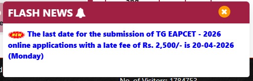 TG EAPCET Application with Late Fee Rs. 2,500/- is Available Upto 20-04-2026