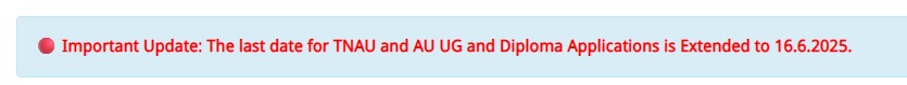 TNAU Agriculture Application is Extended upto 16-06-2025