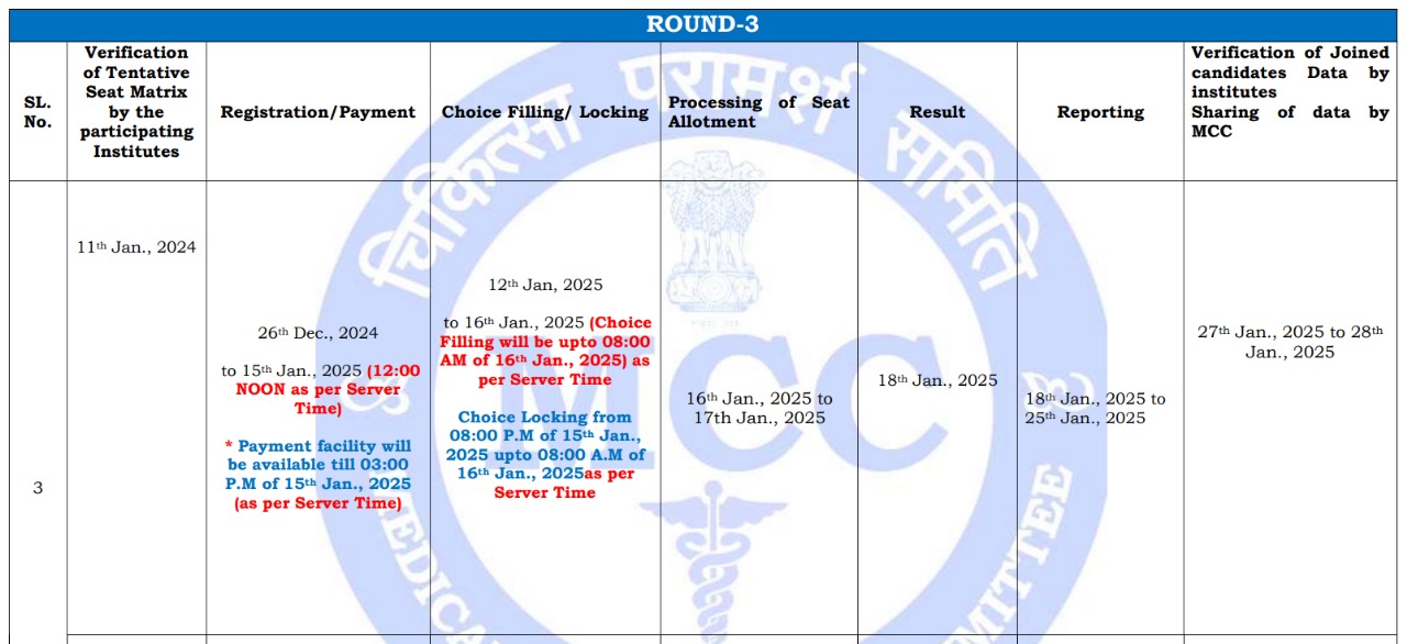New Registration & Payment: 26-12-2024 to 15-01-2025 (12 P.M.)