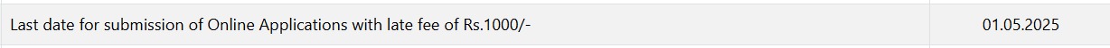 AP EAPCET Application with Late Fee Rs. 1000/- is available upto 1-05-2025.