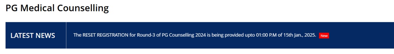 MCC 3rd Round Reset Options is available upto 15-01-2025