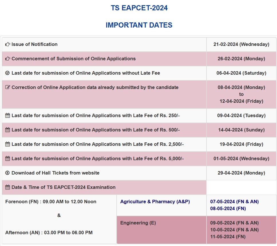 TS EAPCET Application Notification Re-Released – 21/02/24