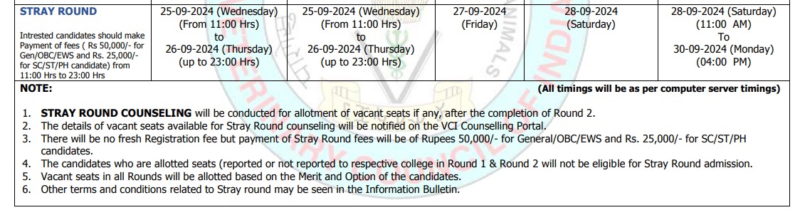 The seat allotted candidates in Round 1 & Round 2 are not eligible for this round